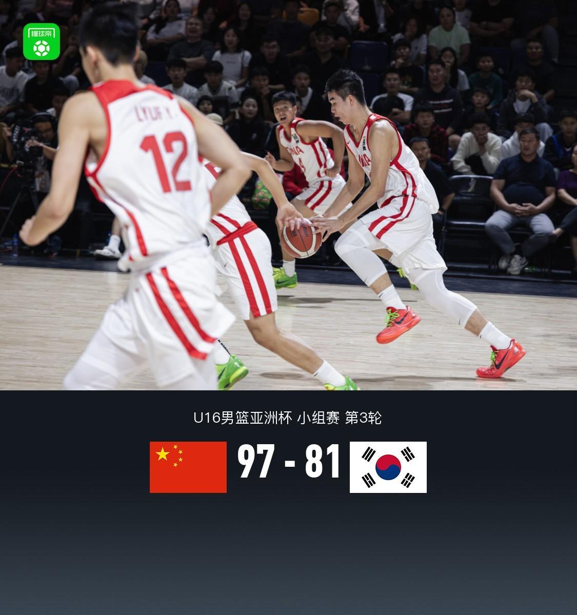 第四节,最终中国男篮U16 97-81战胜韩国男篮U16