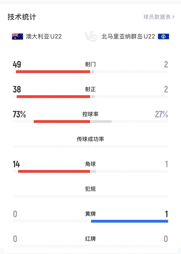 Gaming-U22国足同组对手澳大利亚14球横扫北马里亚纳,全场完成49次射门